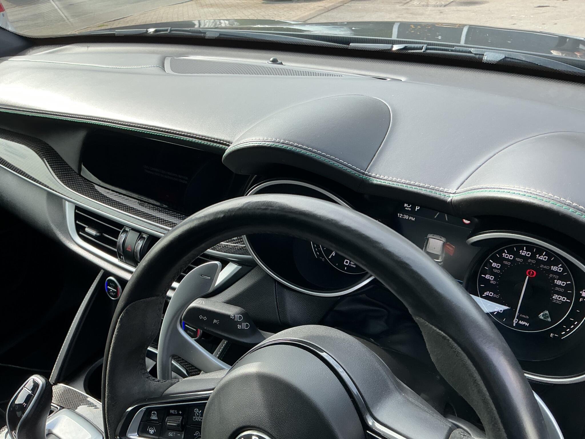 - Quadrifoglio Leather-Alcantara Flat Bottomed Sports Steering Wheel with Carbon Insert