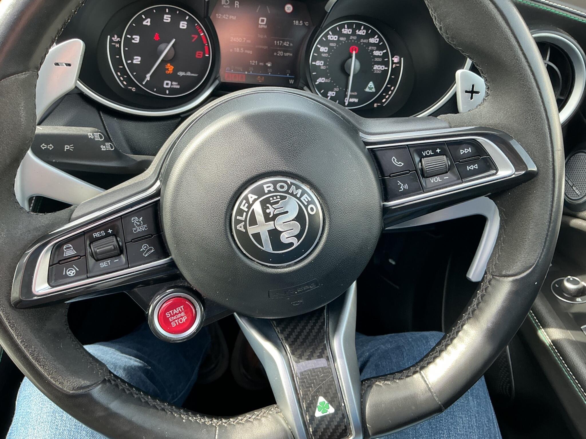 Boasting exceptionally low mileage for its age, this 2021 Alfa Romeo Stelvio V6 Bi-Turbo Quadrifoglio presents a remarkable find. This four wheel drive SUV is powered by a potent 2.9 litre petrol engine, meeting Euro 6 emission standards. It comes with a clear vehicle history check and a full service history, ensuring peace of mind. The vehicle is protected by a 12 month warranty and benefits from an MOT valid until February 2027. Notable features include an electrically operated sunroof, an Akrapovic sports exhaust for an enhanced driving sound, and striking 21 inch dark 5 hole Quadrifoglio alloy wheels. Please note mileage will rise as I am driving. 2 keys supplied, px welcome. Ghost fitted.
